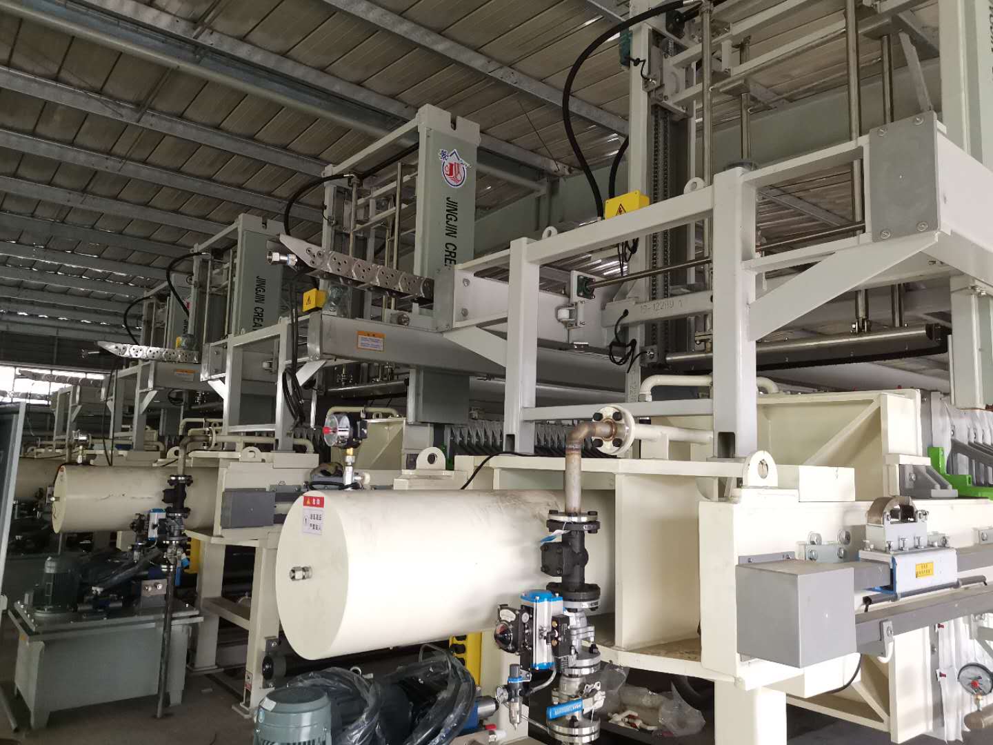 板框压滤机是最先应用于化工脱水的机械。虽然板框压滤机一般为间歇操作、基建设备投资较大、过滤能力也较低,但由于其具有过滤推动力大、滤饼的含固率高、滤液清澈、固体回收率高、调理药品消耗量少等优点,在一些小型污水厂仍被广泛应用.